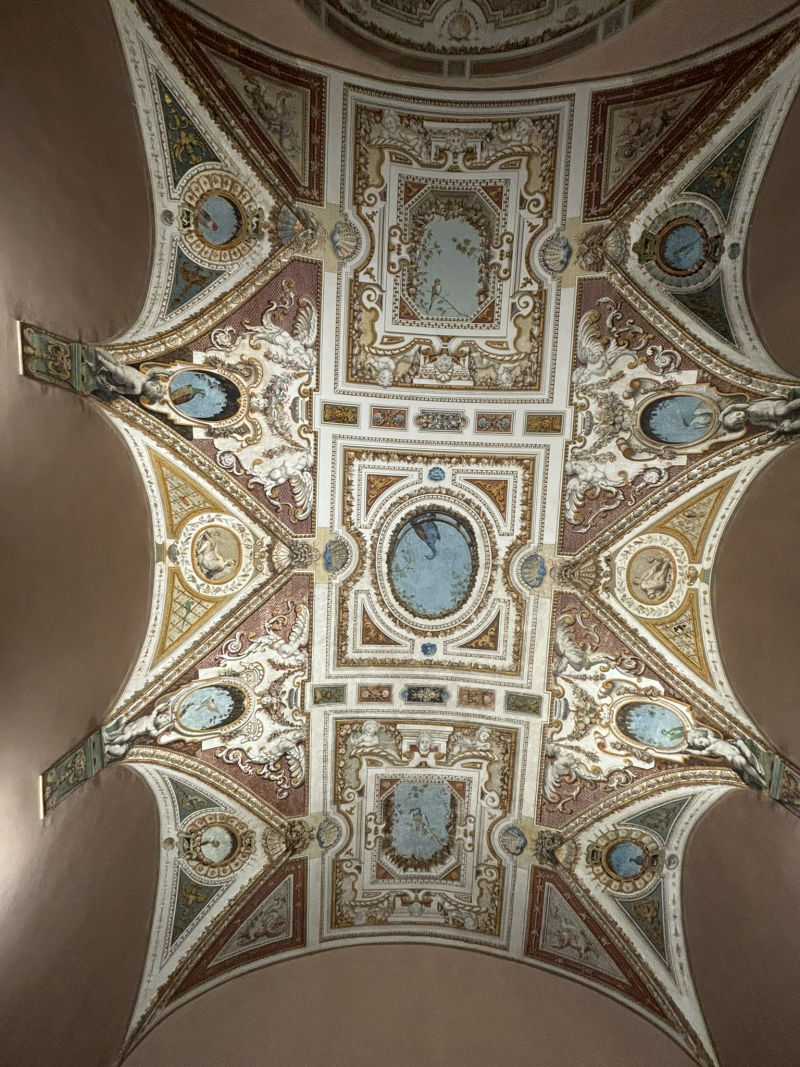 Orazio Riminaldi, he painted the four Evangelists and angels (1597) in the cupola of the Cathedral of Pisa; a Birth of the Virgin and Annunciation (1598) in the choir; and decoration of the organ in 1602.