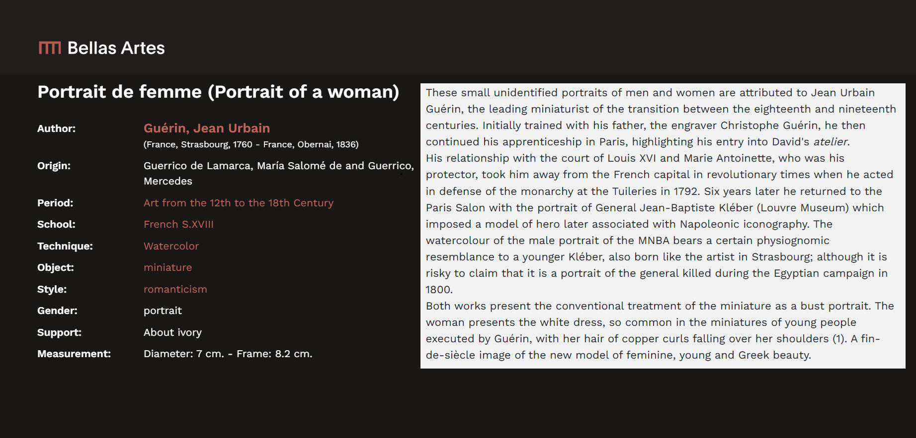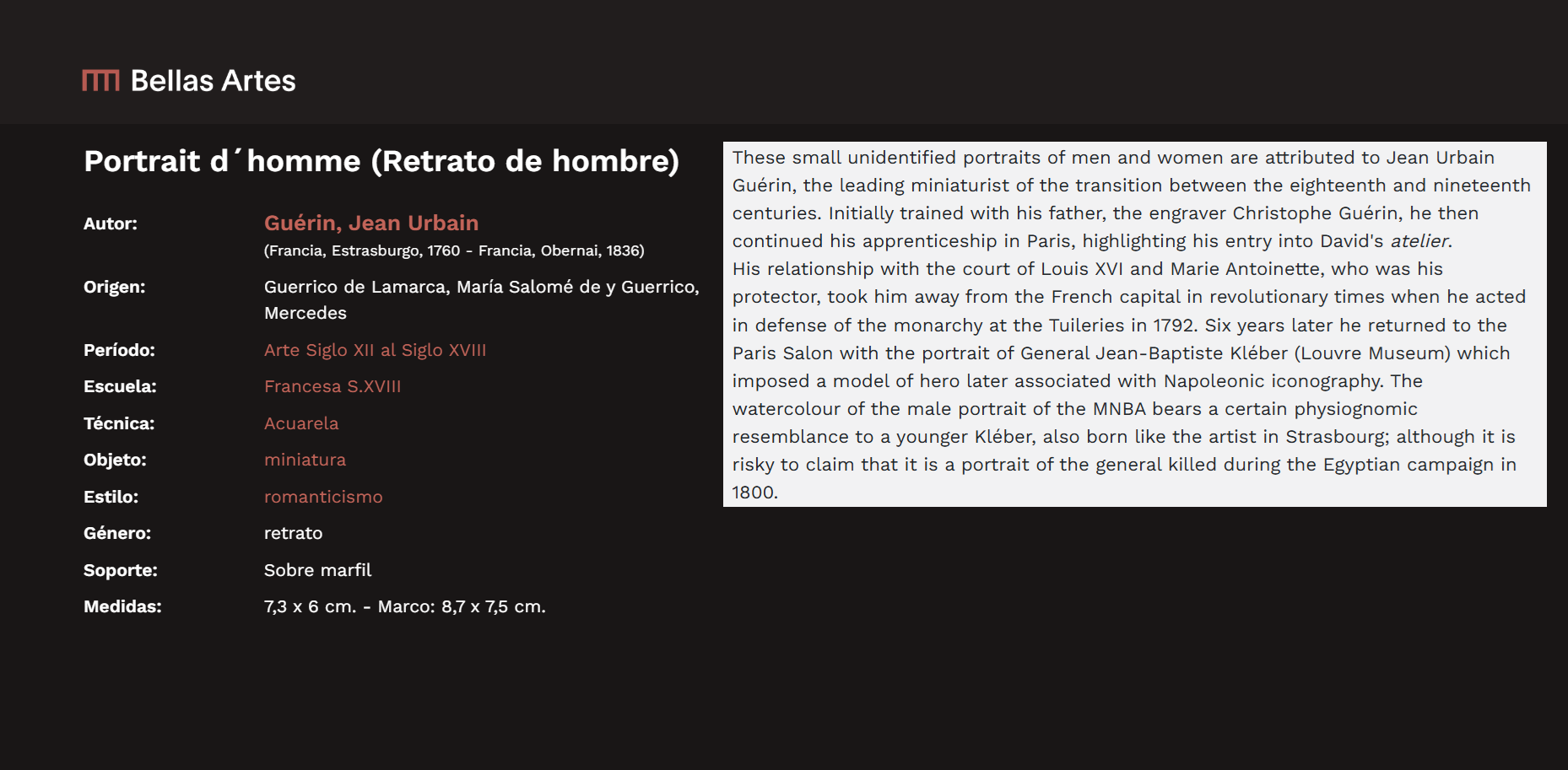 • During his career, he painted portraits of several generals of the Republic, including the one, often copied, of Kléber, his childhood friend, and Bonaparte.