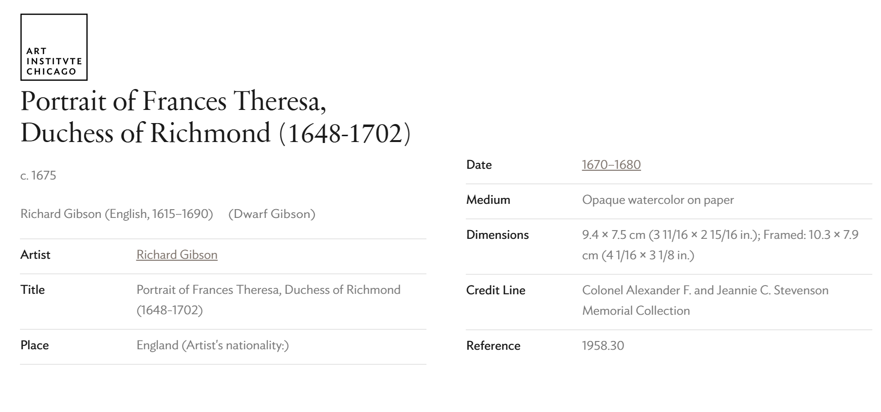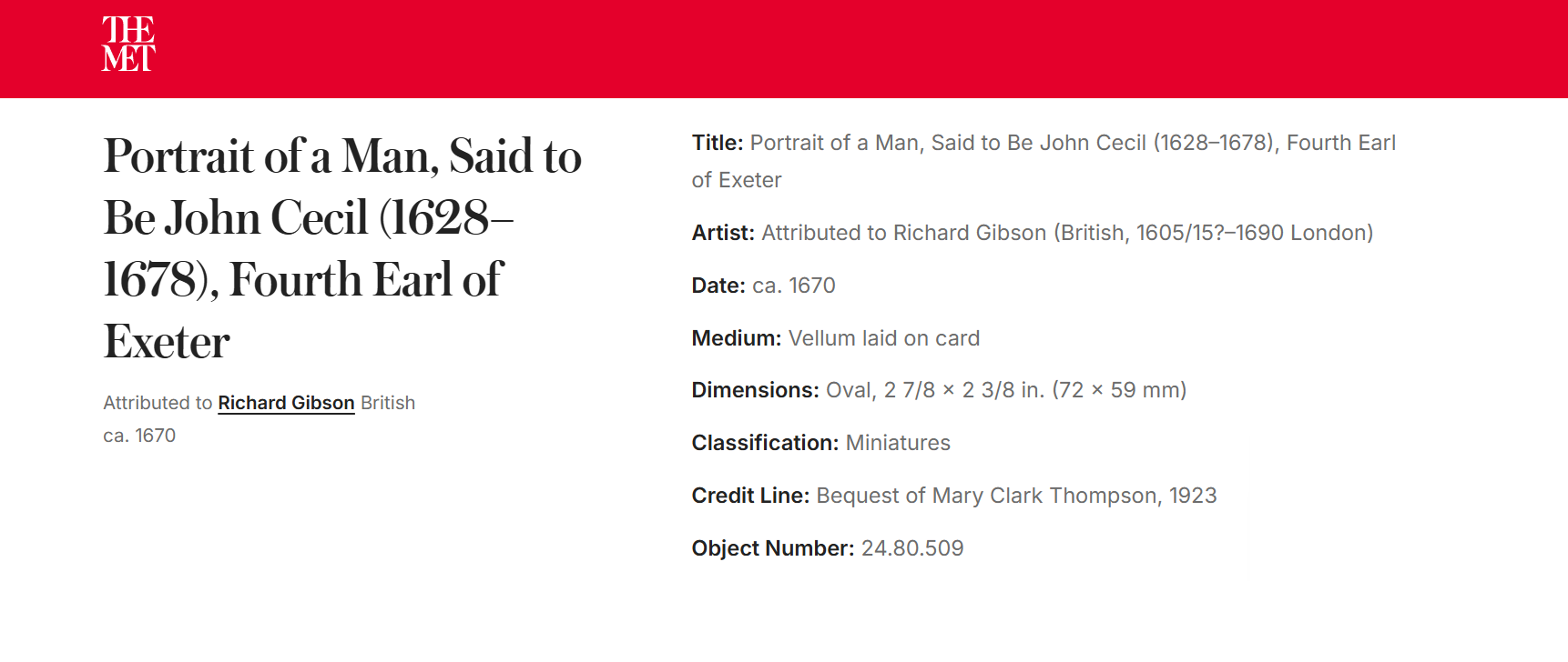 • The displayed painting is a crop from Anonymous After Peter Lely, Portrait of Richard Gibson, 1658.