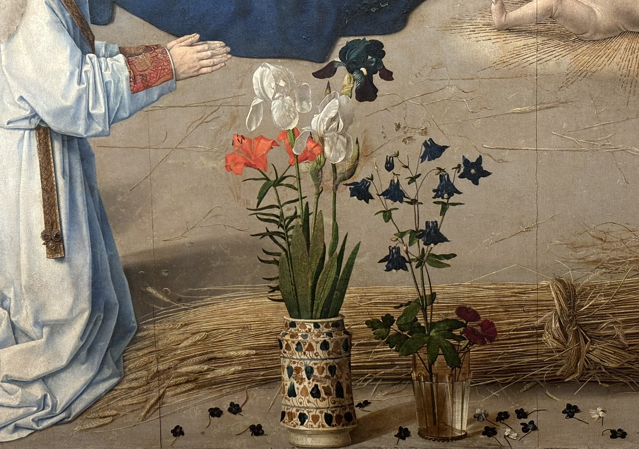 Hugo van der Goes or a member of his circle, The virgin and child with Saint Thomas, John the Baptist, Jerome,and Louis, c 1475