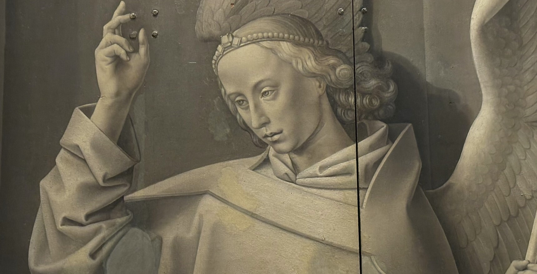 • The displayed painting is a crop from: Hugo van der Goes, A Benedictine Monk, ca. 1478.