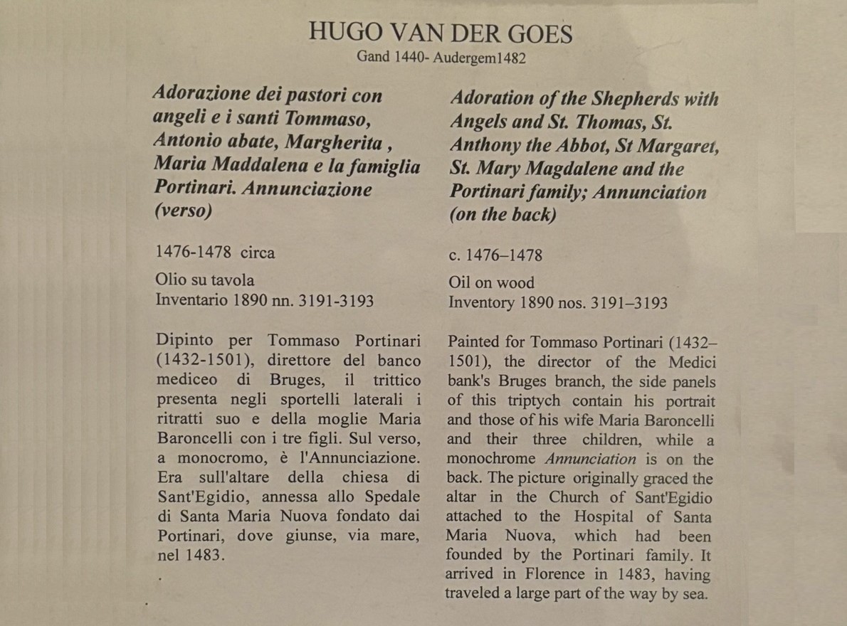 Hugo van der Goes, Adoration of the Shepherds with Angels and St. Thomas; and the Portinary Family; Annunciation (on the back), c.1476-1478
