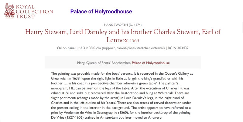 Hans Eworth, Henry Stewart, Lord Darnley and his brother Charles Stewart, Earl of Lennox 1563