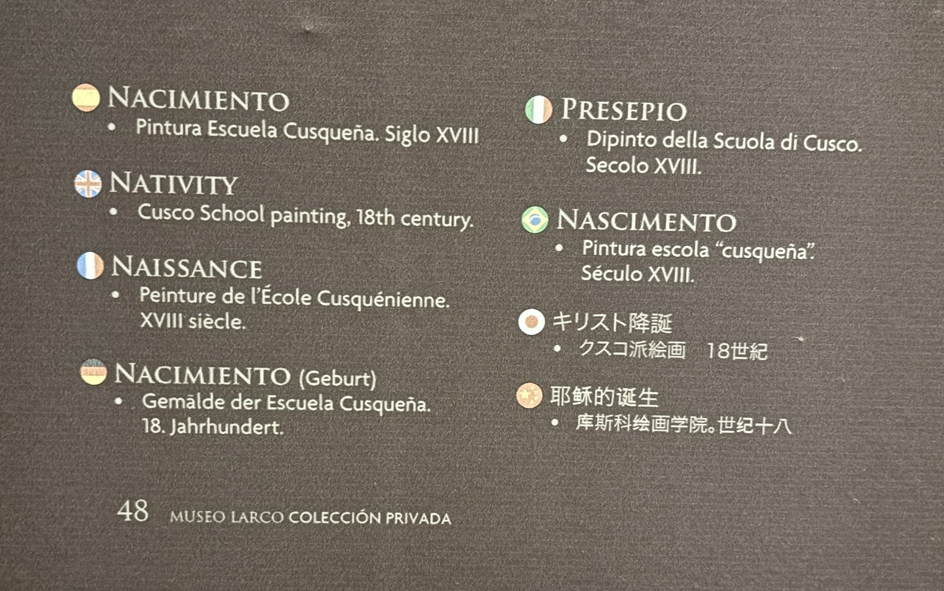 • Many colonial Cusco school paintings are preserved, most of them currently at Cusco, but also in other areas of Peru, the town of Calamarca (Bolivia) and in museums of Brazil, United States and England.