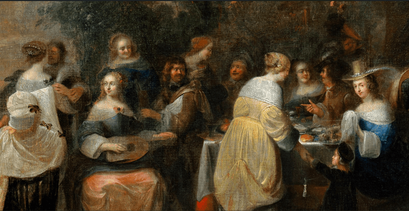Follower of Hieronymus Janssens, Ladies and Gentlemen playing La Main Chaude, probably 1655-65
