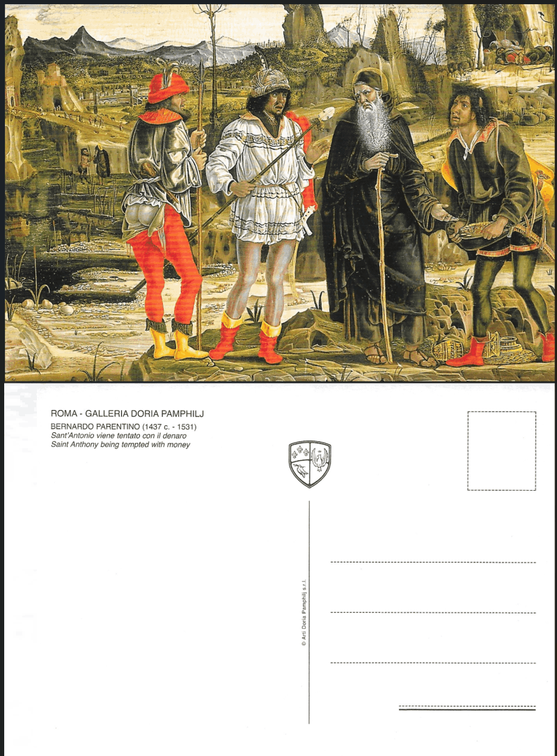 Bernardo Parentino, Saint Anthony being tempted with money [postcard]