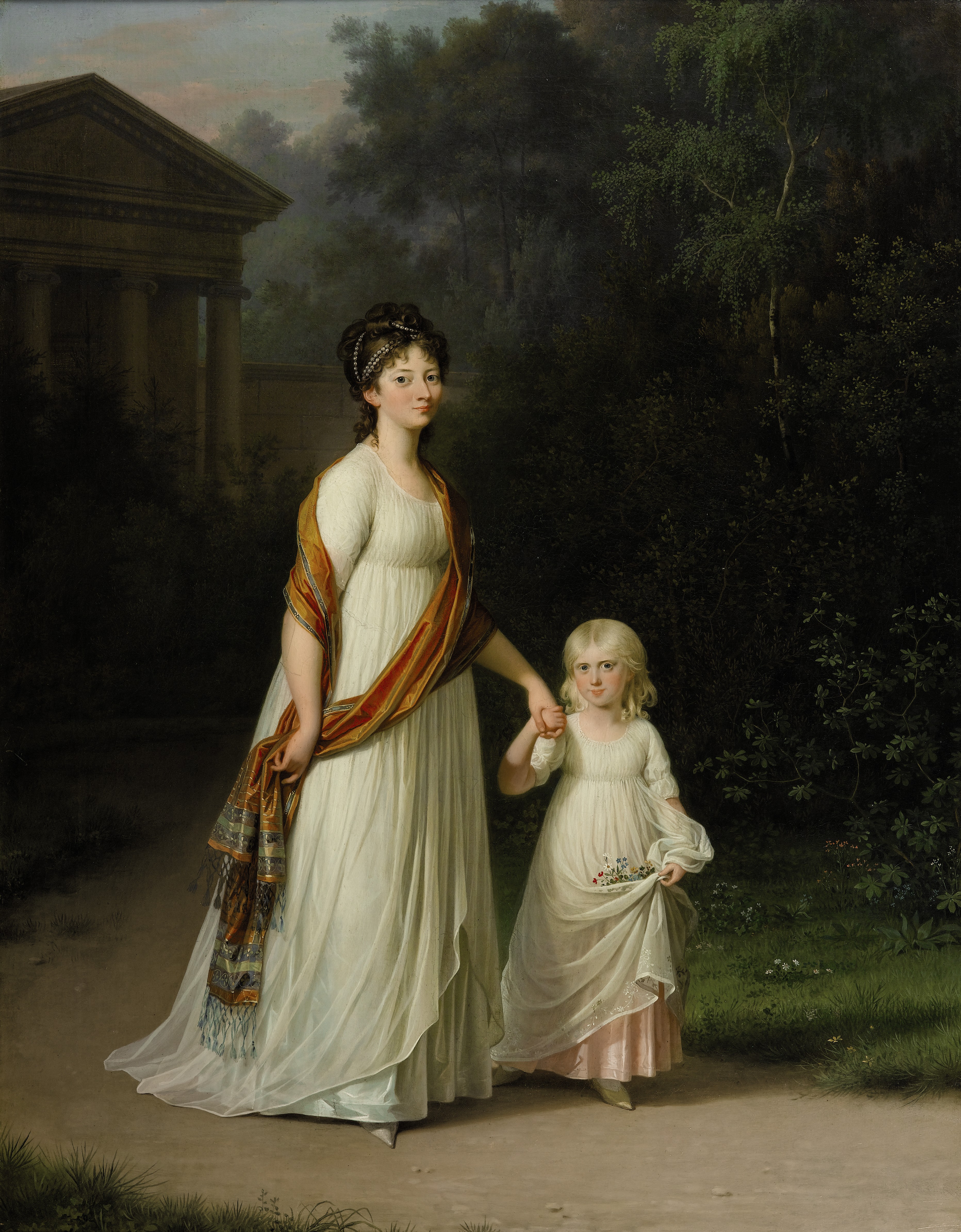 Jens Jørgensen Juel, Crown Princess Marie with her daughter Princess Caroline in a romantic Garden, 1800