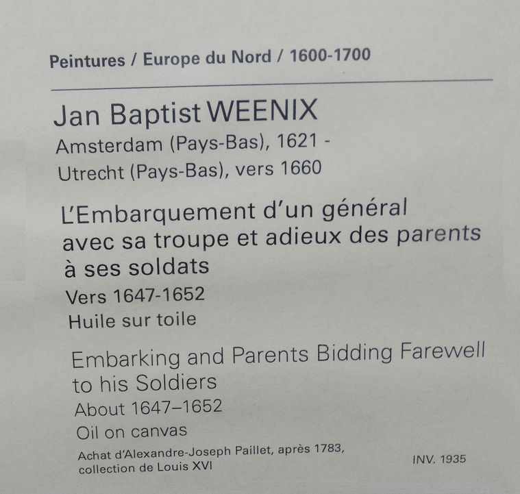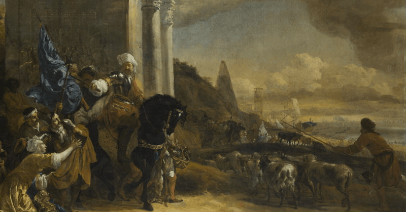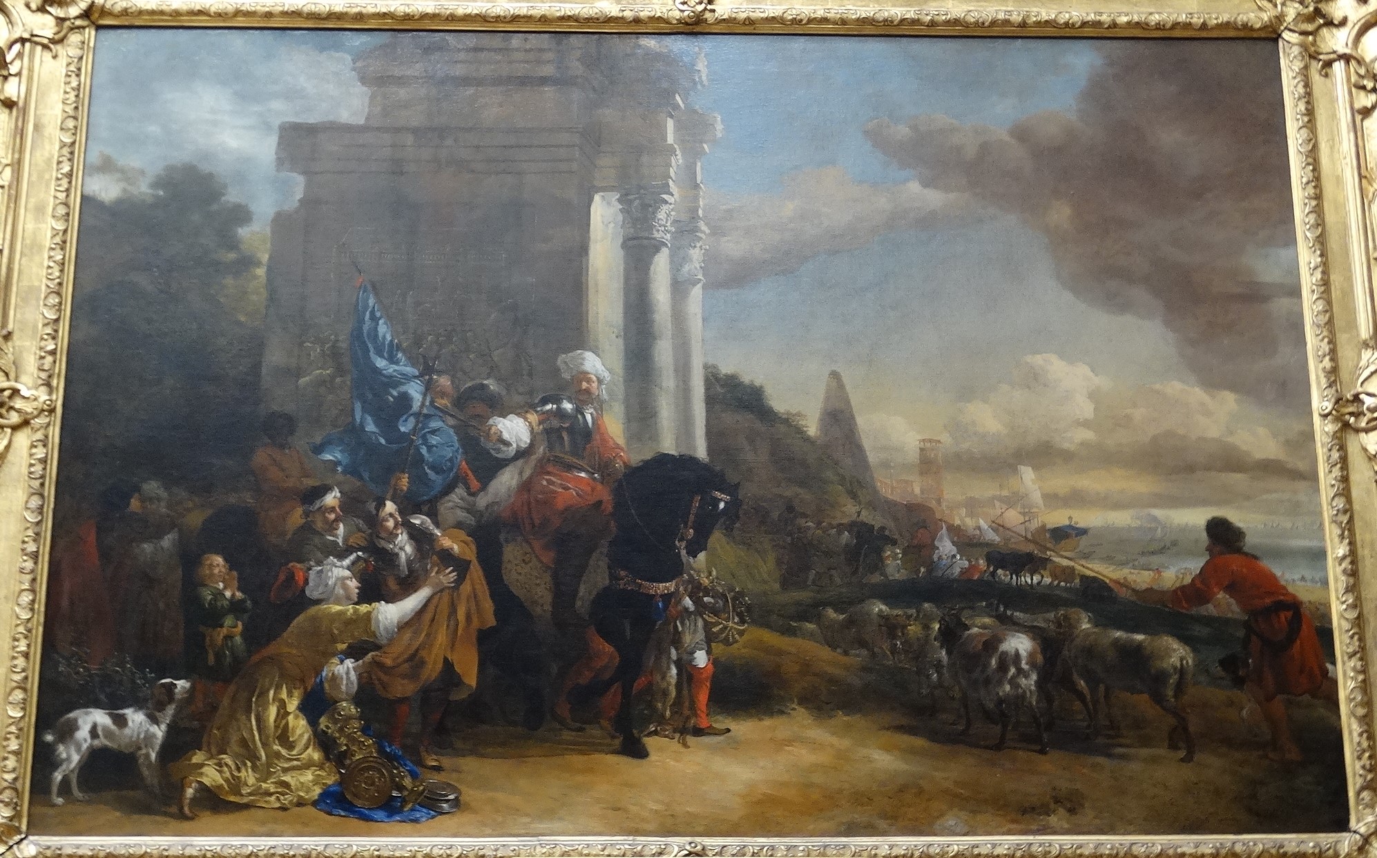 Jan Baptist Weenix, Departure of an oriental troop, formerly known as The Corsairs Repulsed or The Embarkation of a General with his troop and farewell of the parents...