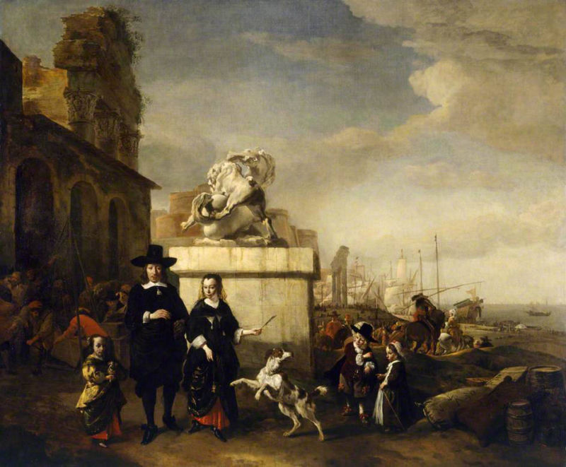 Jan Baptist Weenix, Family in a Mediterranean Seaport, 1650s