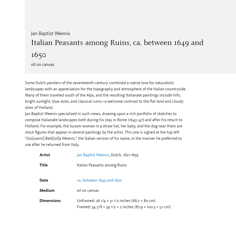 Jan Baptist Weenix, Italian Peasants among Ruins, ca. between 1649 and 1650.