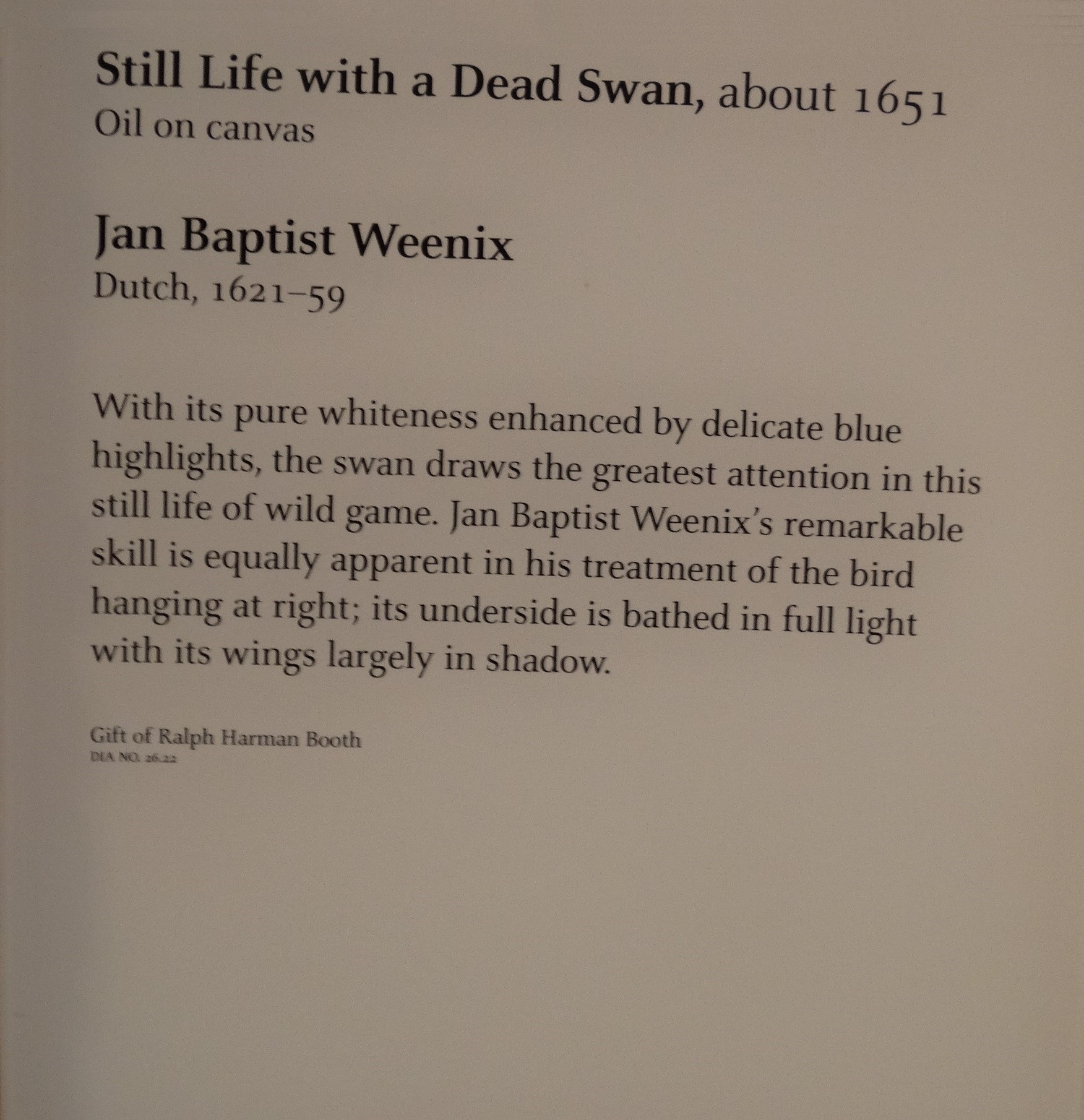 Jan Baptist Weenix, Still Life with a Dead Swan, ca. 1651