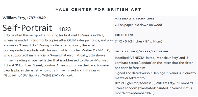 • The displayed painting is a crop from: William Etty, Self-Portrait, 1823.