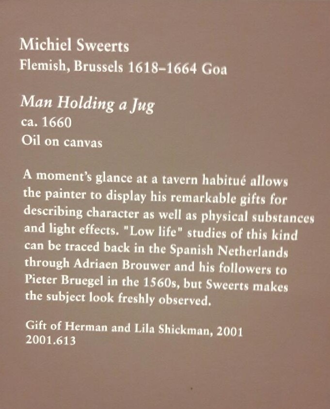 Michiel Sweerts, Man Holding a Jug, ca. 1660