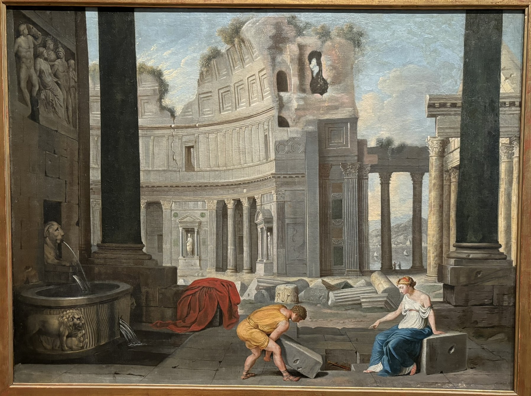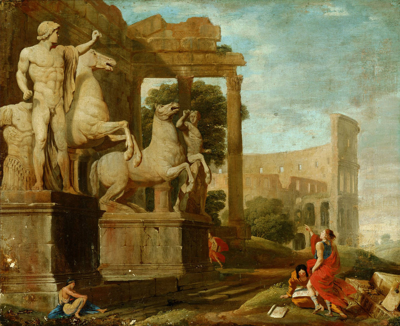 Jean Lemaire, Landscape of Ruins with Dioscuri and Colosseum, around 1630