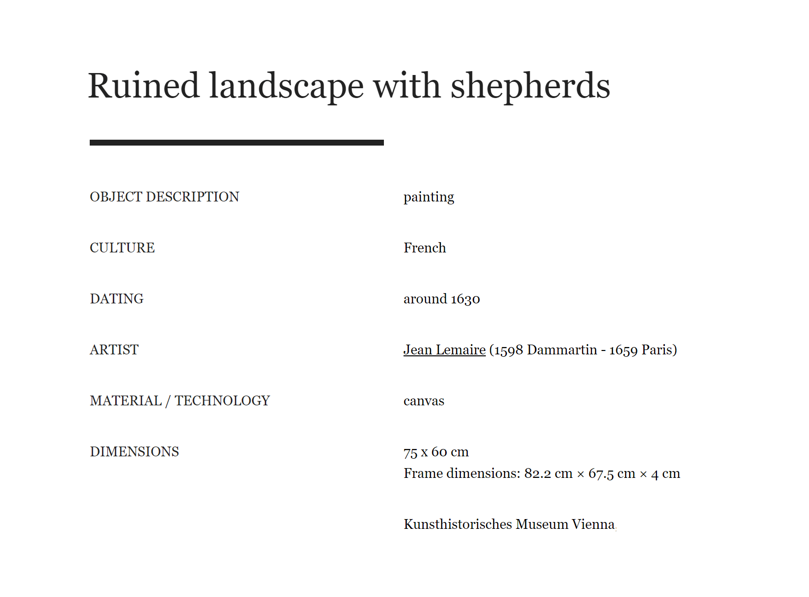 Jean Lemaire, Ruined landscape with shepherds, around 1630
