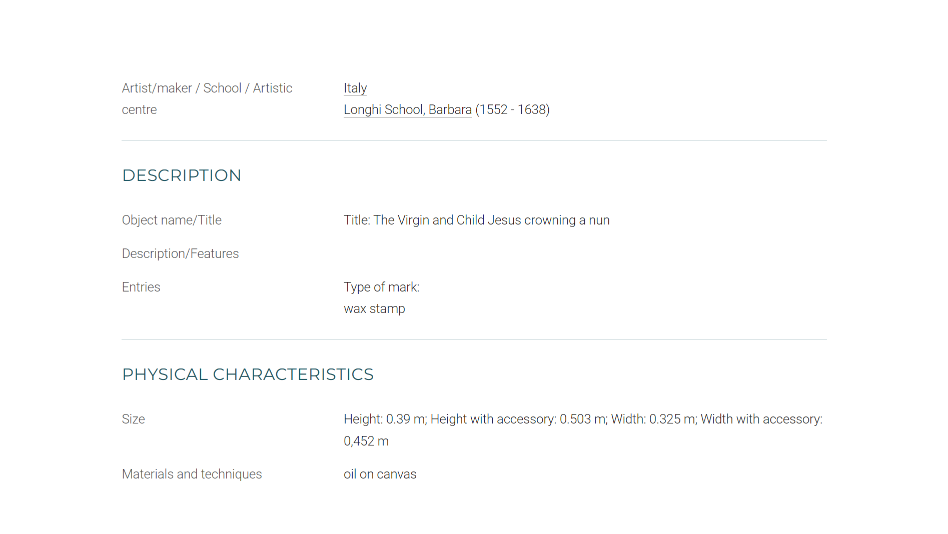 • Most of Longhi's paintings are unsigned, but on one she included the initials "B.L.F.", and on another, "B.L.P."