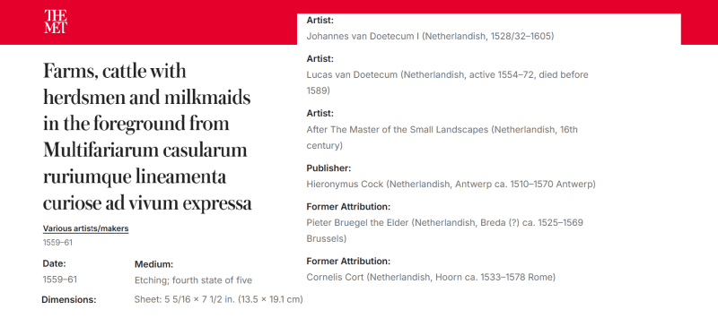 • In 1564 or 1565 Joannes and his brother Lucas van Doetecum are believed to have engraved 72 heads attributed to Pieter Brueghel the Elder that followed this paired arrangement.