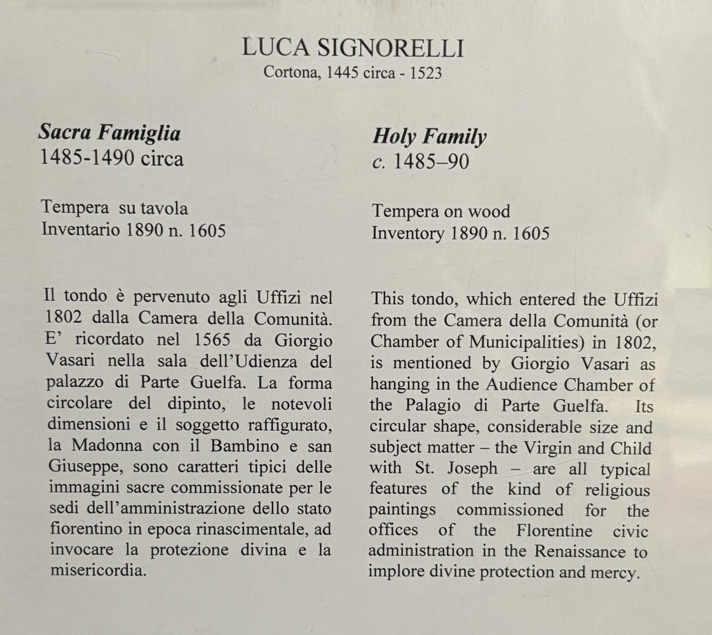 • The displayed painting is a crop from: Luca Signorelli, Madonna and Child, ca. 1505-07.