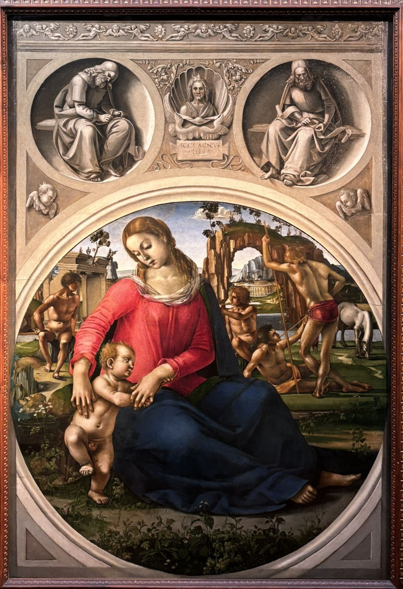 Luca Signorelli, Madonna and Child. In Monochrome St. John the Baptist with Two Prophets, c. 1490