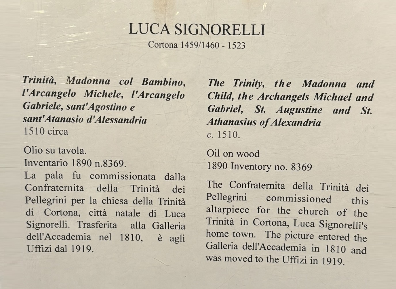 Luca Signorelli, The Tinity, the Madonna and Child, the Archangels Michael and Gabriel, St. Augustine, c. 1510