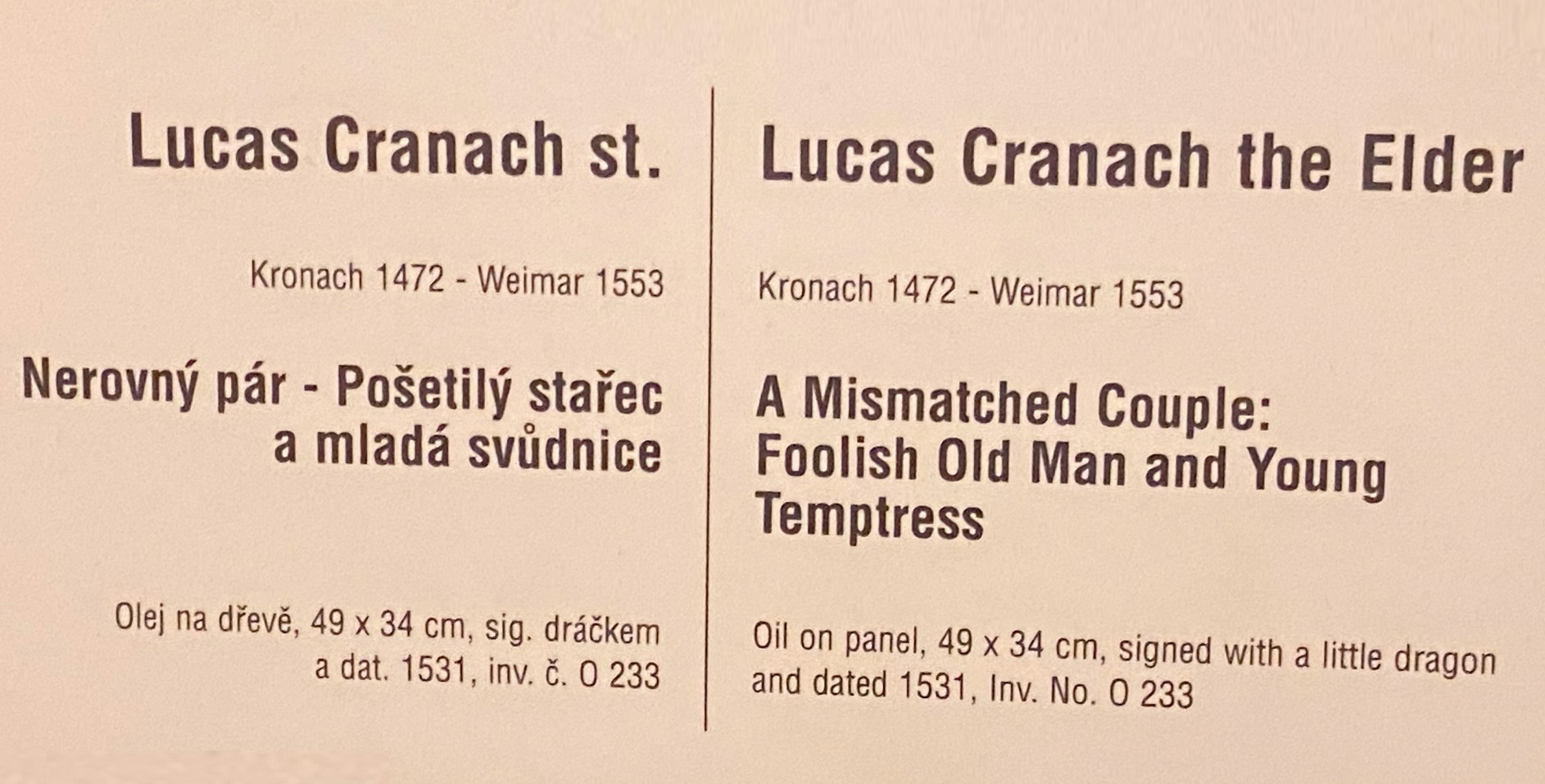 Lucas Cranach the Elder, A Mismatched Couple, Foolish Old Man and Young Temptress, dated 1531