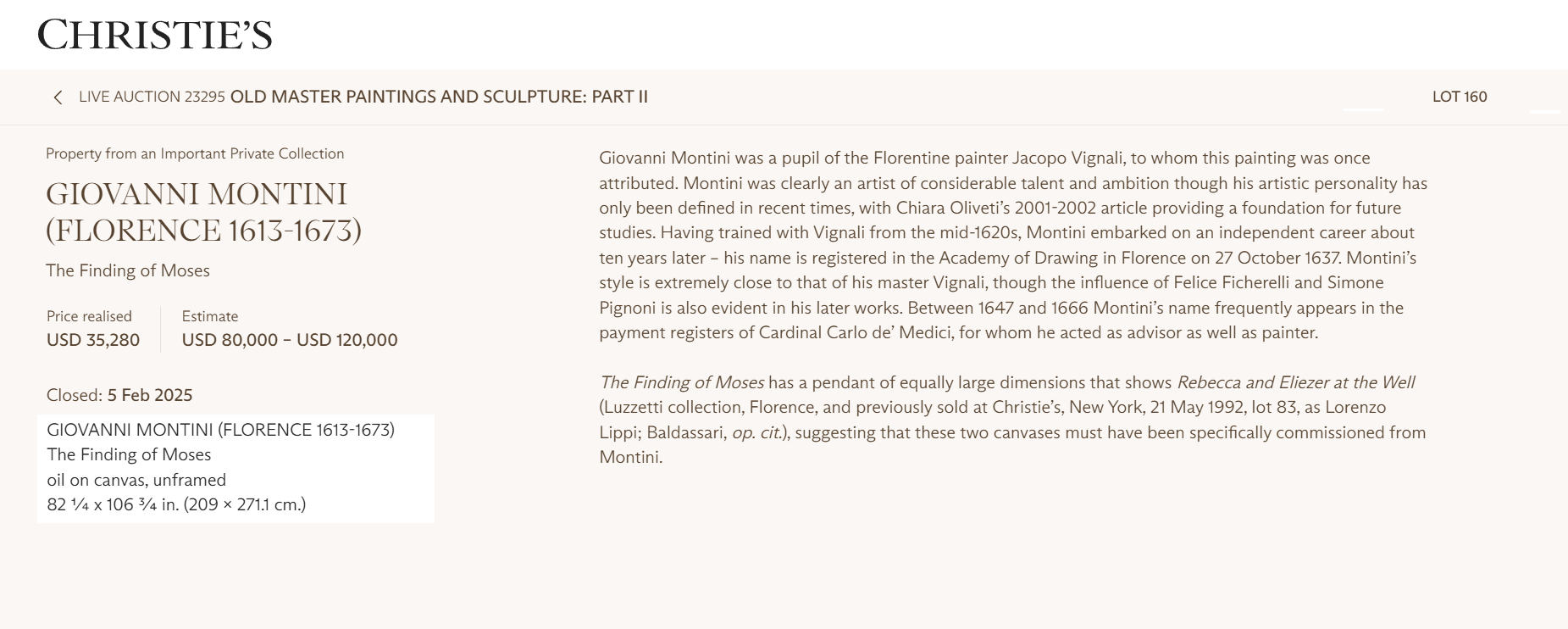 • Between 1647 and 1666 Montini’s name frequently appears in the payment registers of Cardinal Carlo de’ Medici, for whom he acted as advisor as well as painter.
