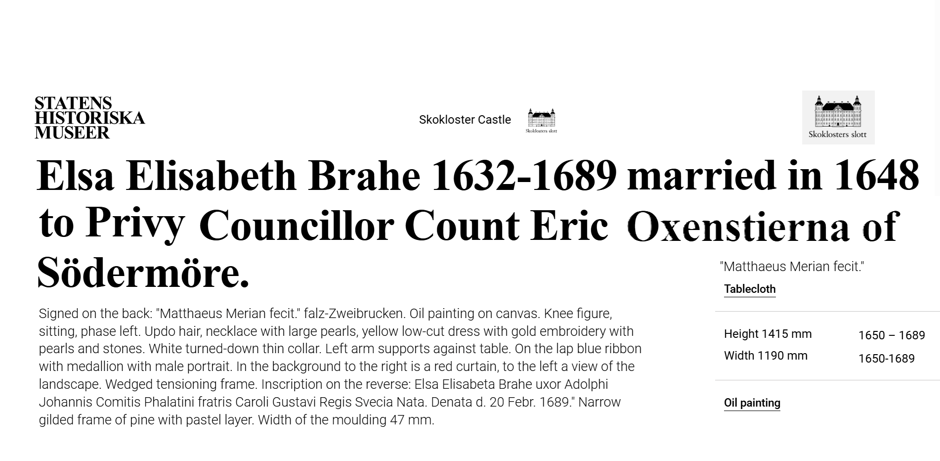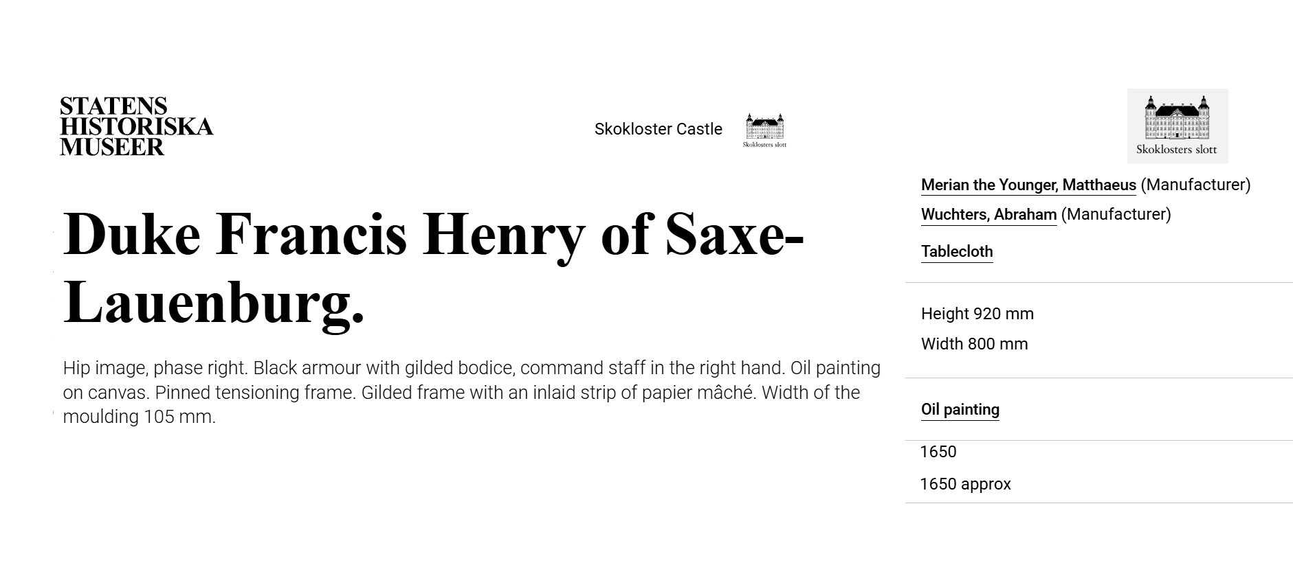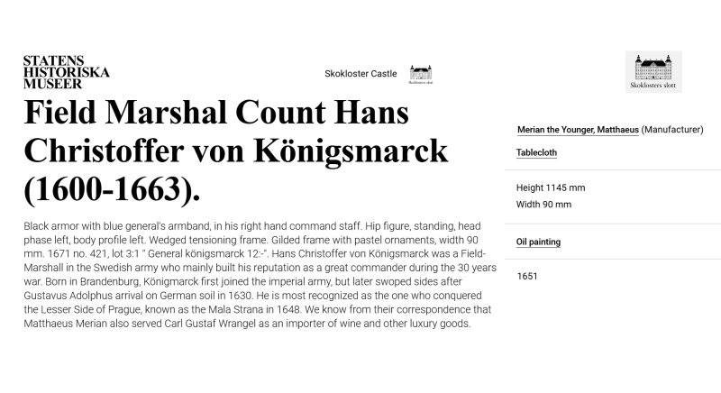 • He is documented as having served Carl Gustaf Wrangel as an importer of wine and other luxury goods and is known for his portraits.