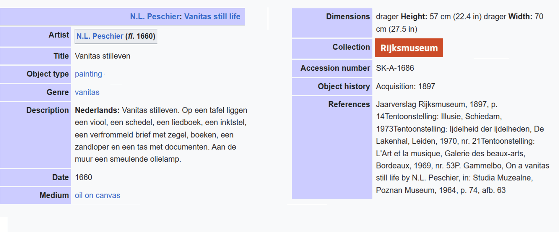 • The displayed painting is a crop from: N.L. Peschier, Vanitas Still Life, 1661.