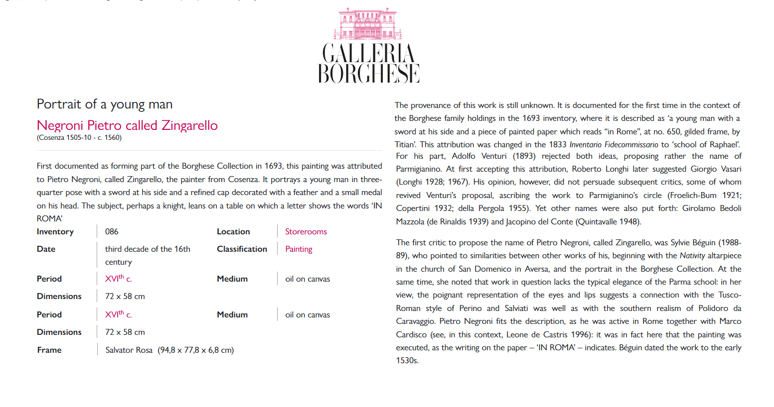 • Also called Il Giovane Zingaro and Lo zingarello di Cosenza (the little gypsy from Cosenza).