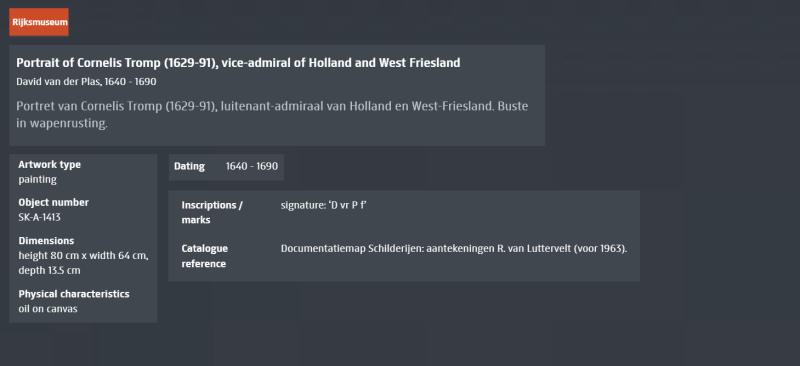• David van der Plas became famous as a portrait painter, and his most illustrious patron was Cornelis Tromp.