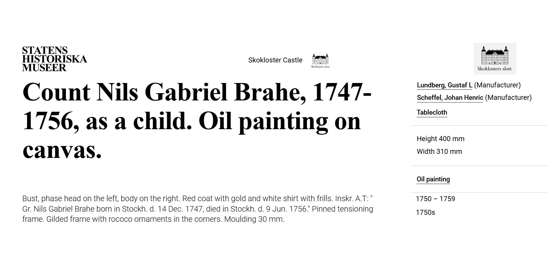 • In Stockholm, the artist worked until 1765, when he moved to Västerås.
