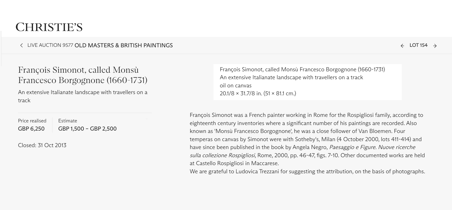 • Working in Rome for the Rospigliosi family, according to eighteenth century inventories where a significant number of his paintings are recorded.