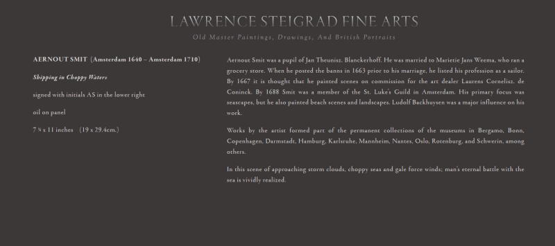 • It is assumed that Smit took commissions from this art dealer after completing his training.