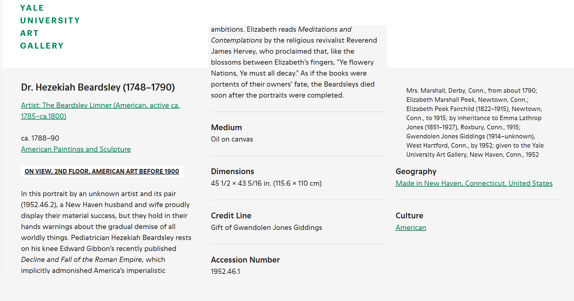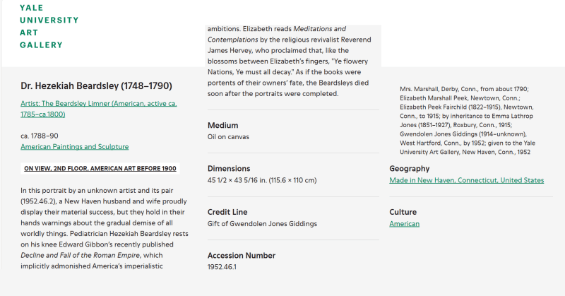The Gansevoort Limner (active 1730- 1745), The Beardsley Limner (ca. 1788–90), The Payne Limner (active ca. 1780 - 1803)