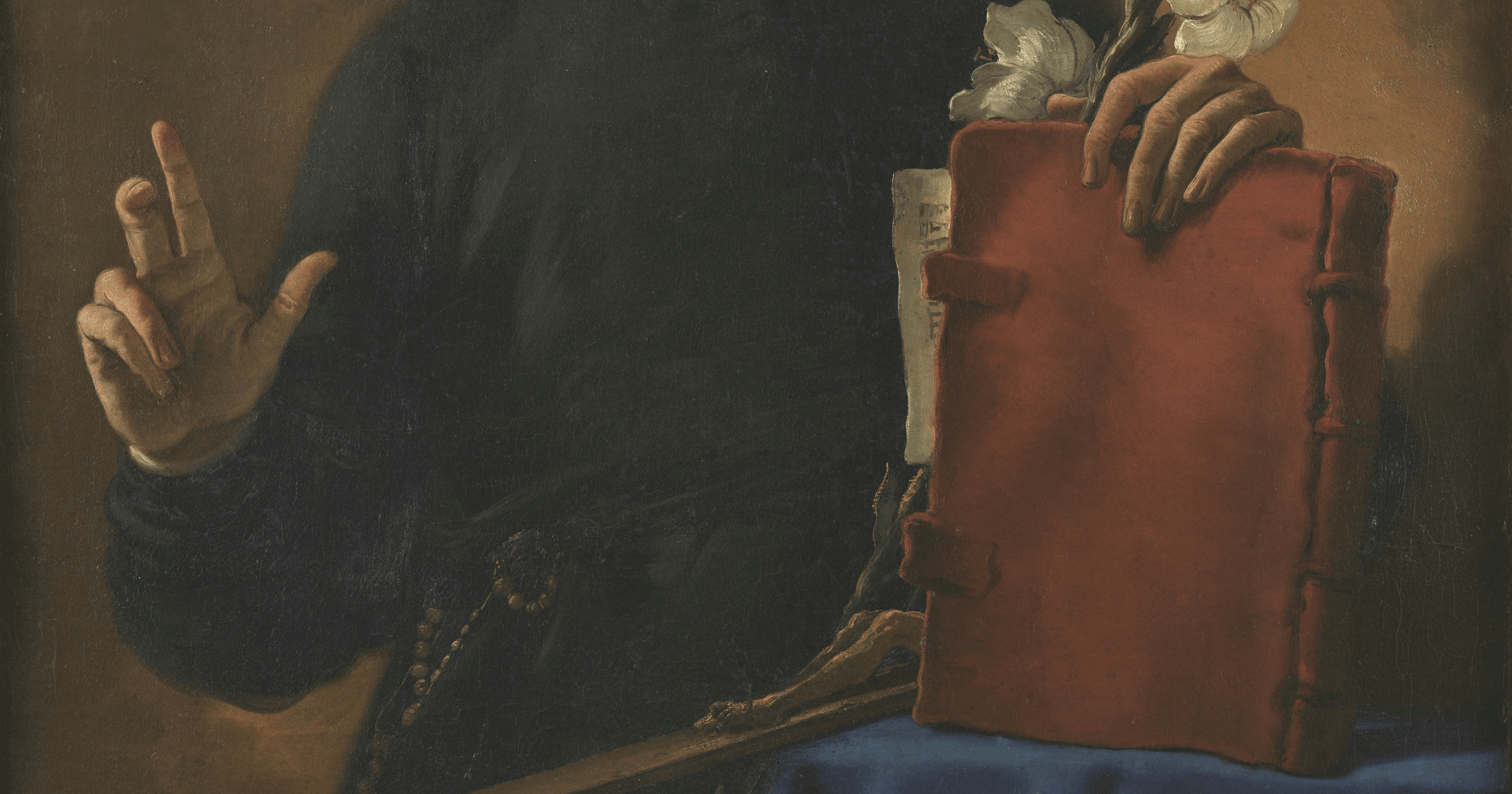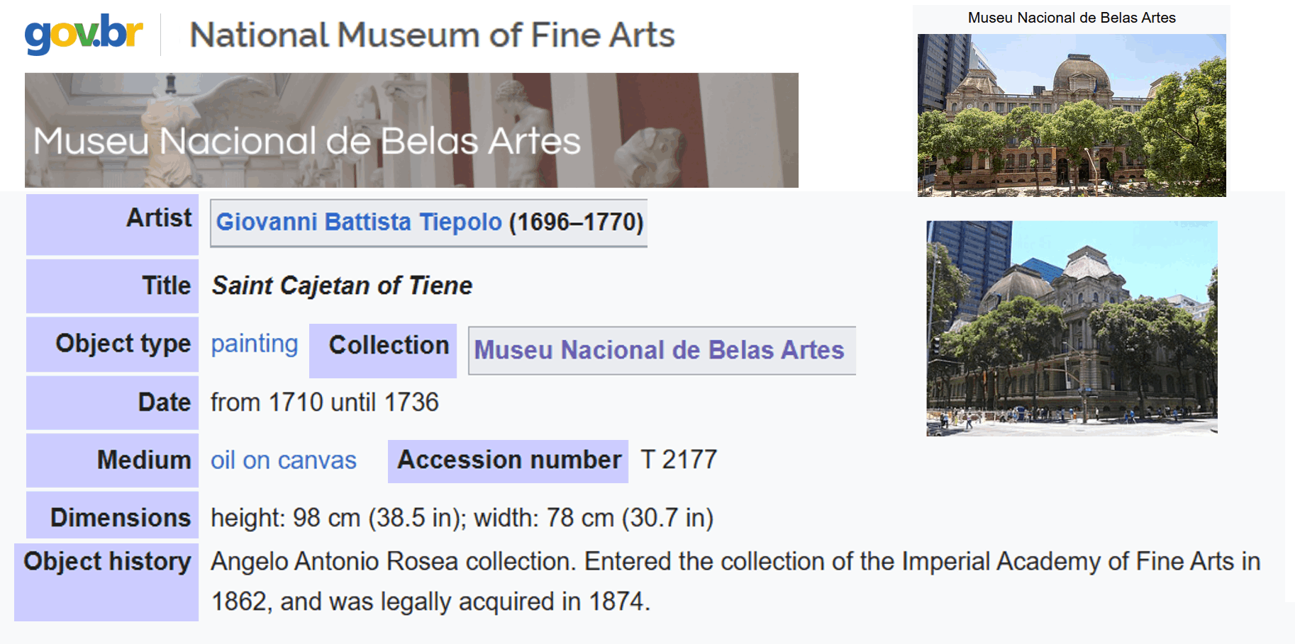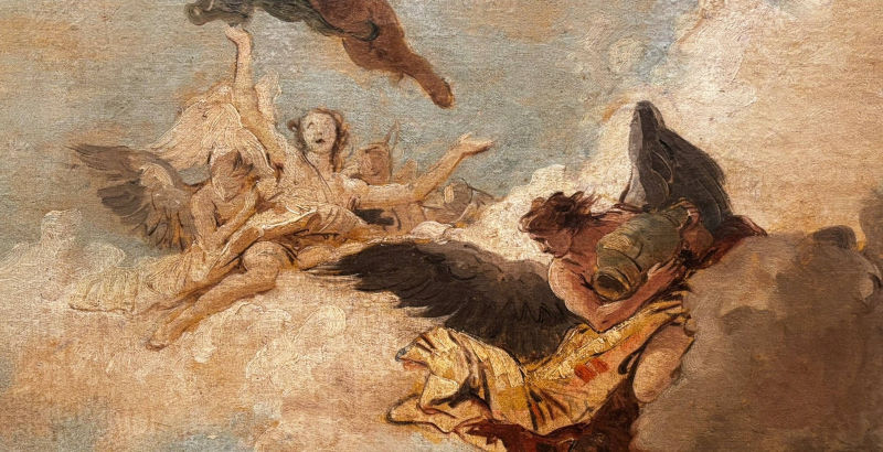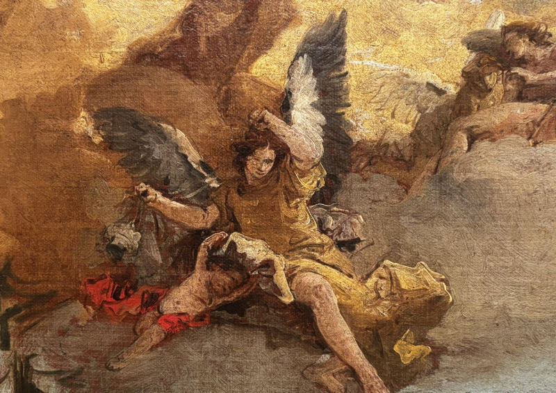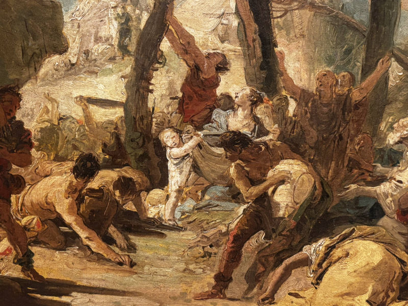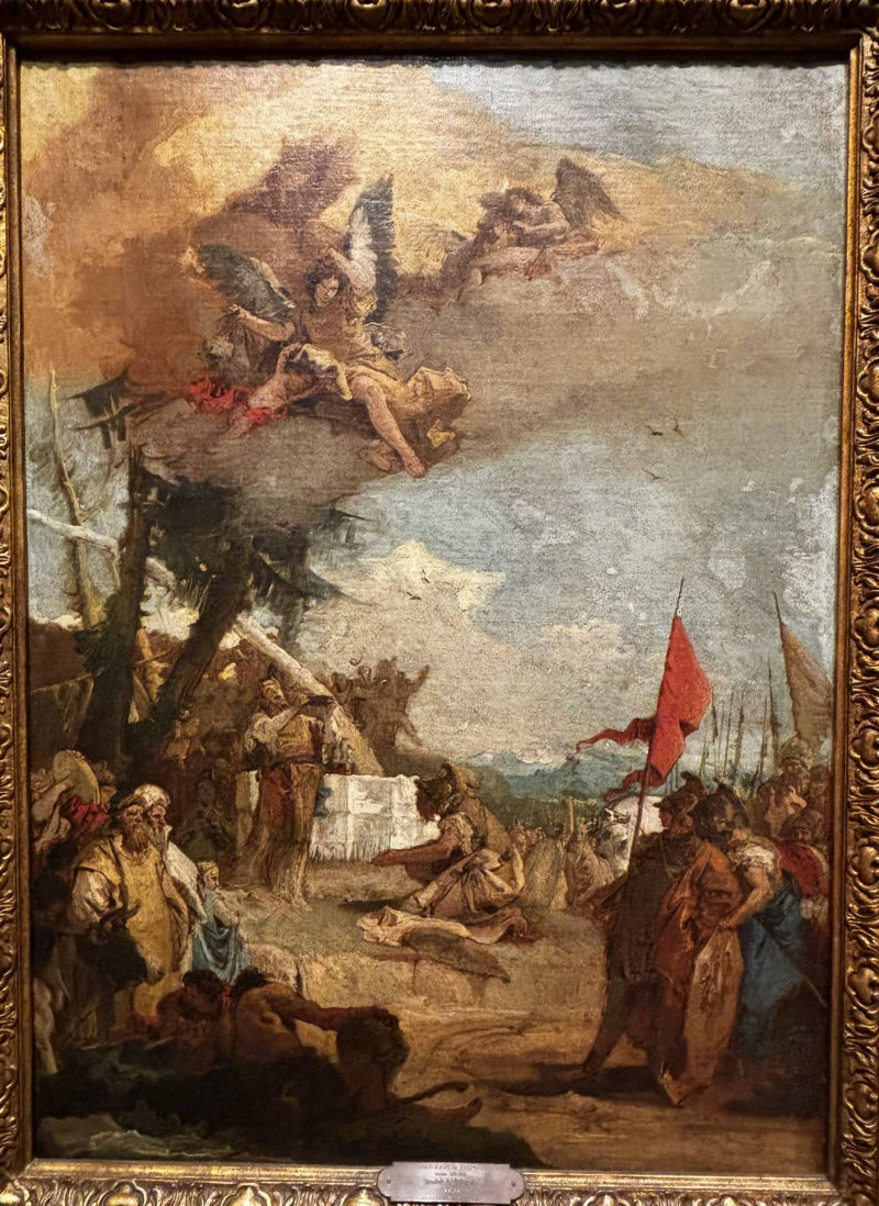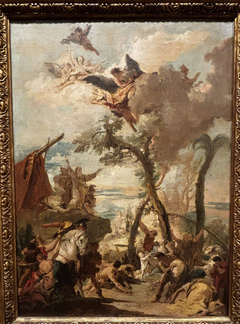• The displayed painting is a crop from Giovanni Battista Tiepolo, The Death of the Consul L. J. Brutus, 1728-30.