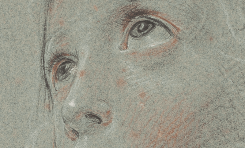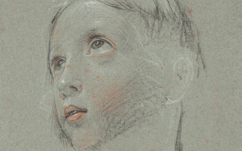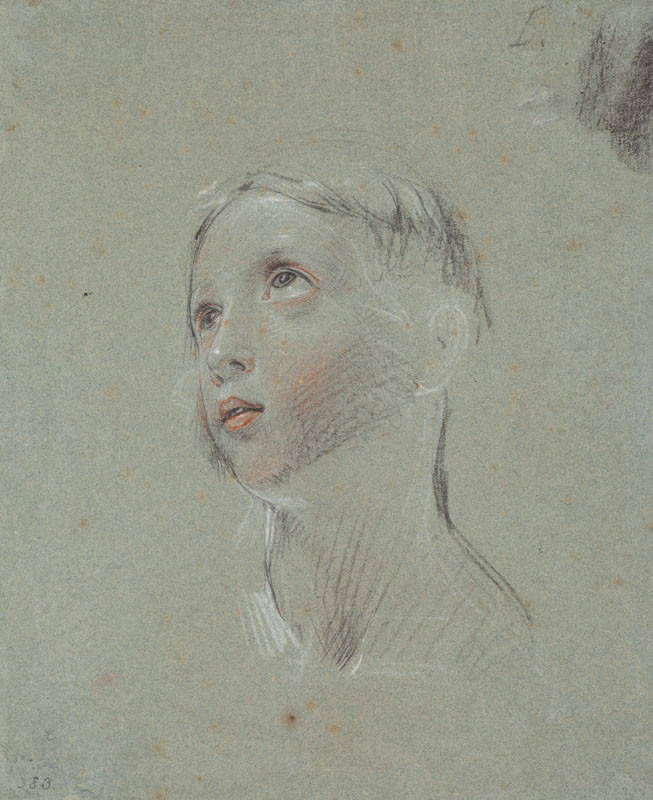 • The displayed painting is a crop from: František Tkadlík, Head of a Young Girl Looking Upwards, 1820.