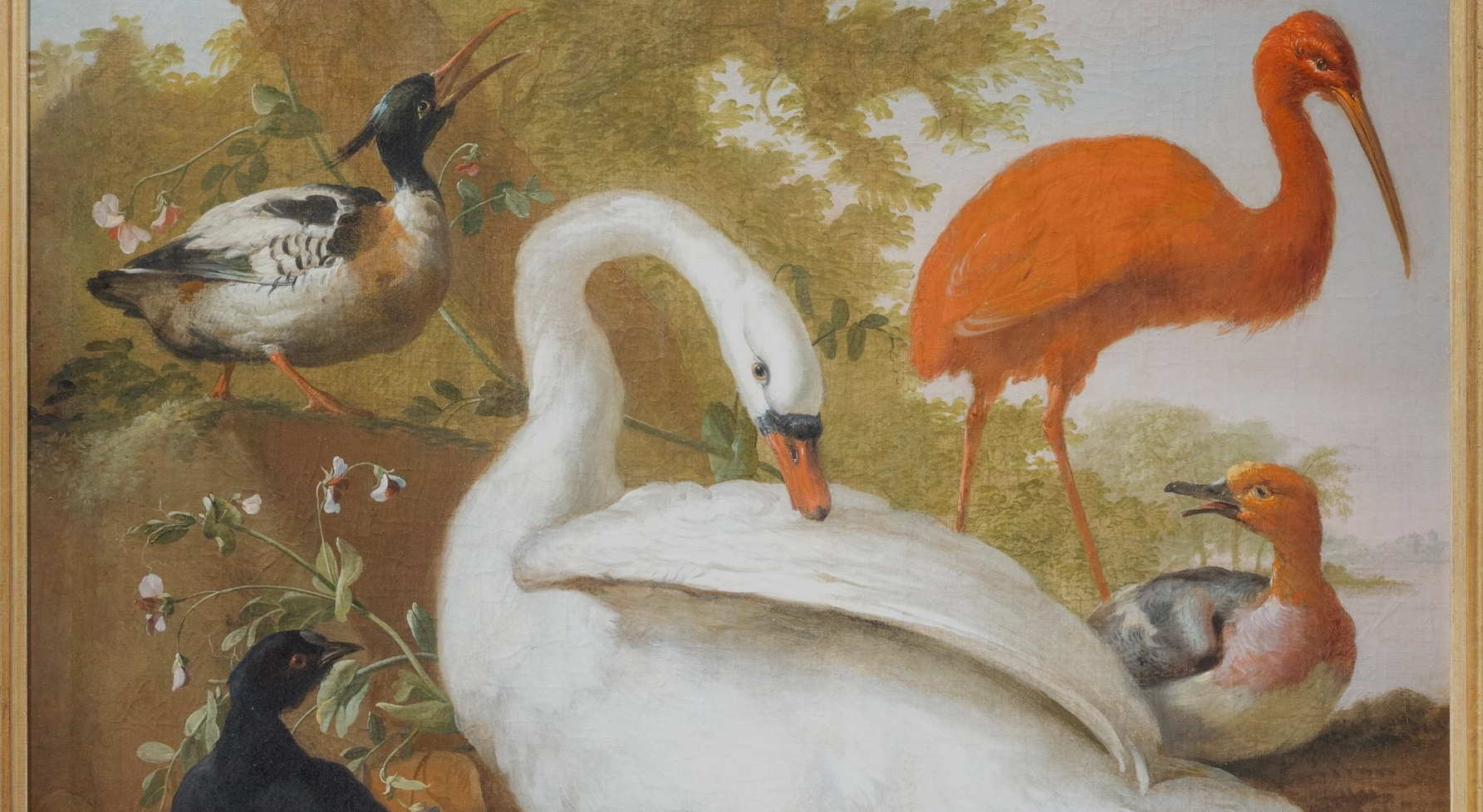 • He also painted flower swags surrounding garden urns with birds and at times vanitas elements.