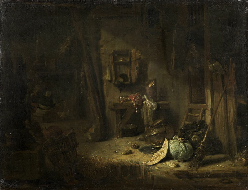 Willem Kalf, Interior of a rustic kitchen, 1642 - 1643