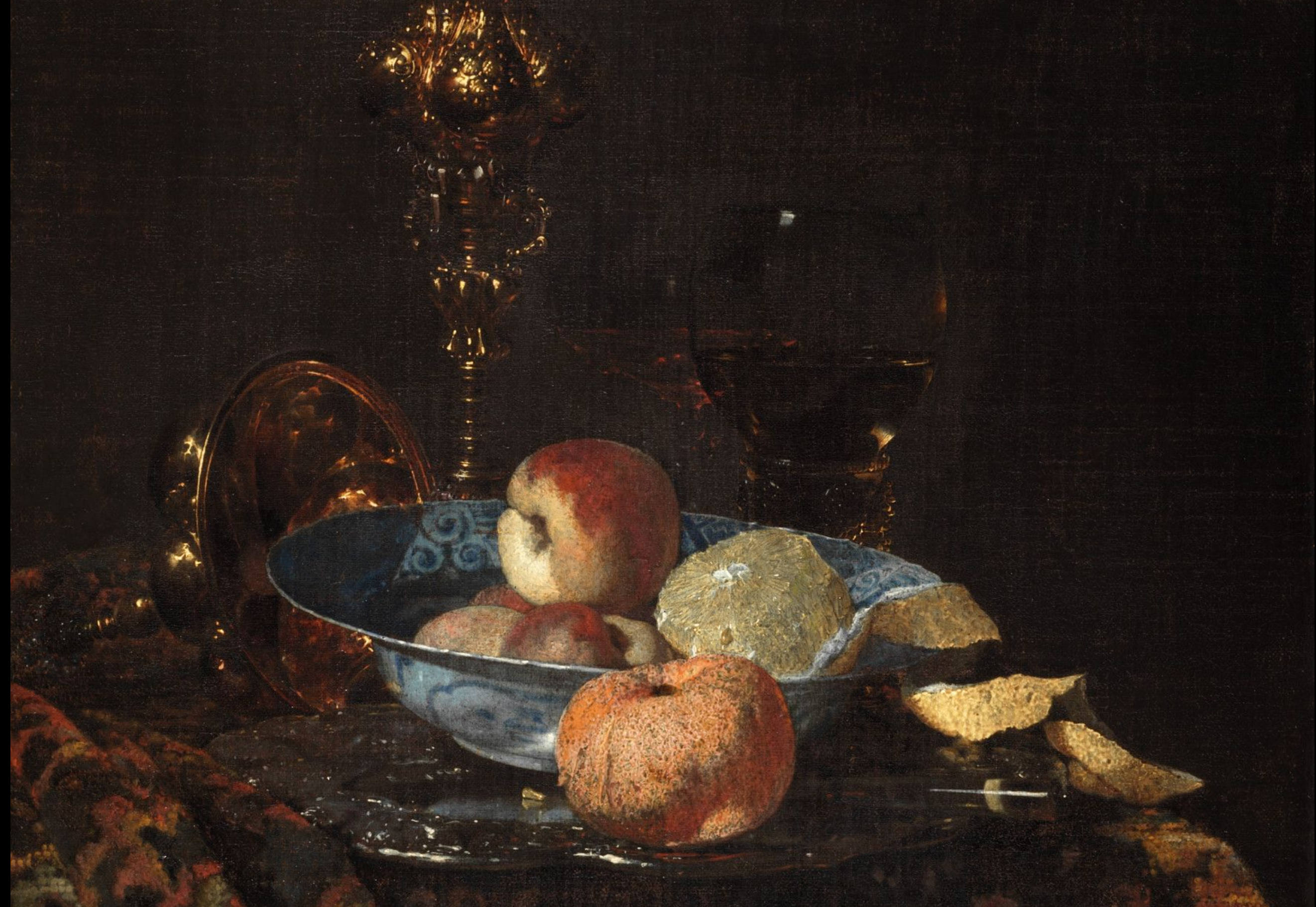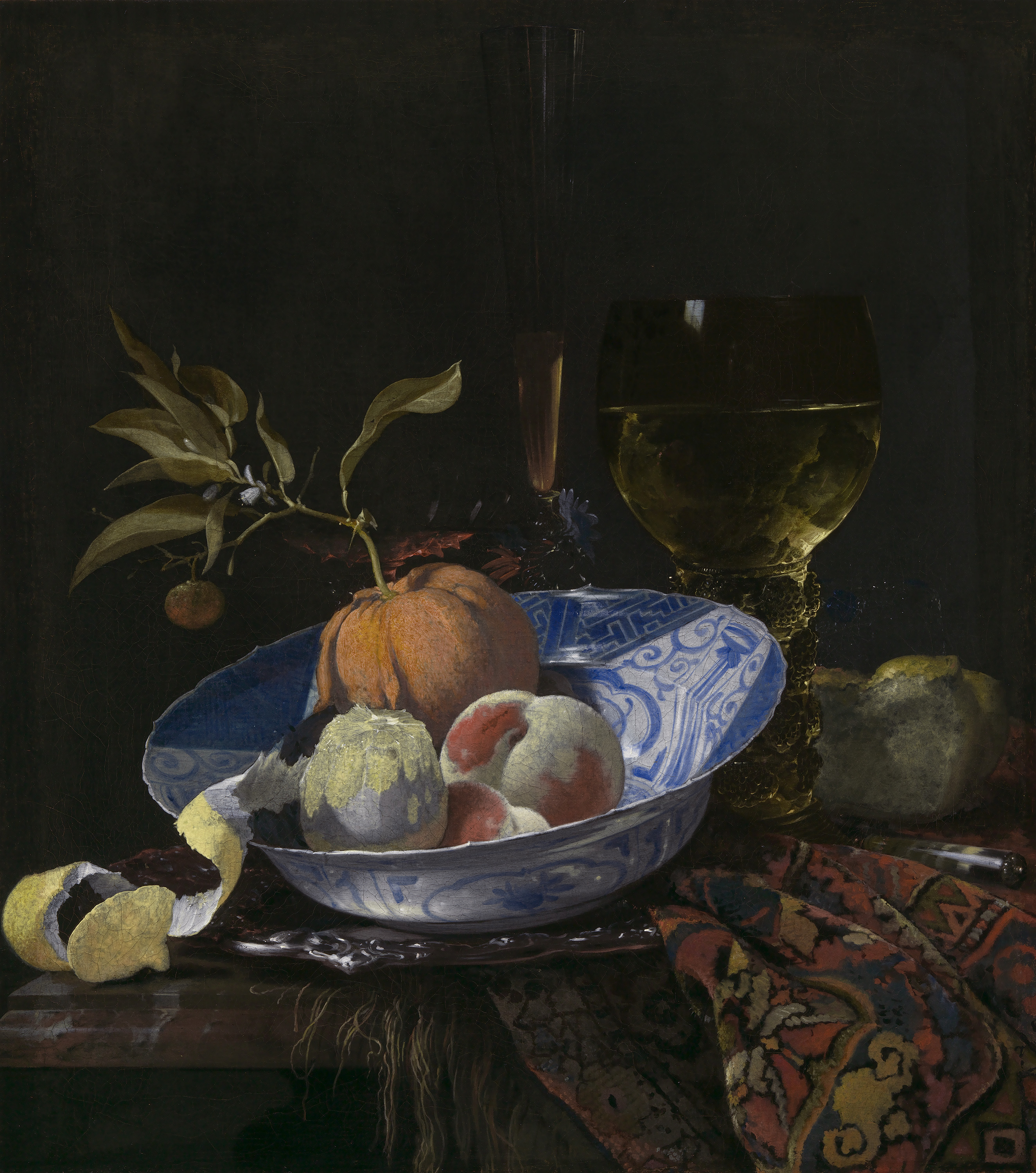 Willem Kalf, Still Life with Fruit, Glassware, and a Wanli Bowl, 1659