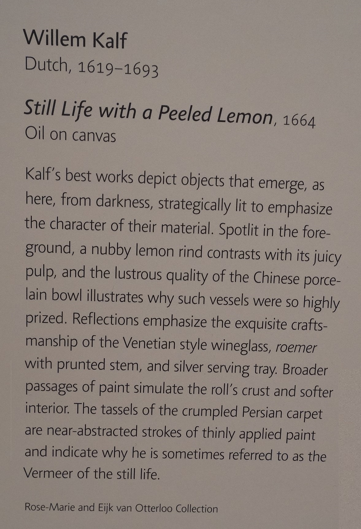 Willem Kalf, Still Life with a Peeled Lemon, 1664