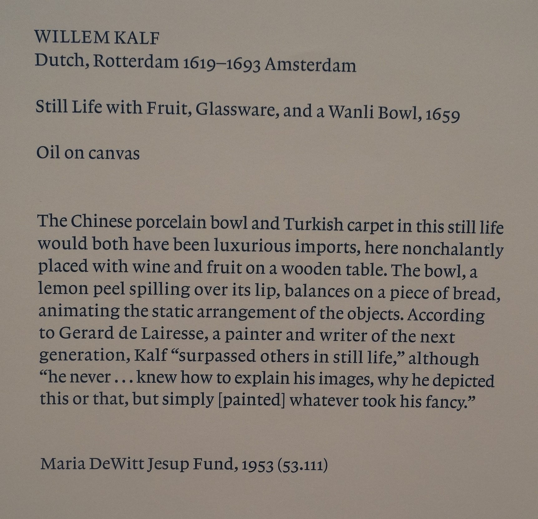 Willem Kalf, Still Life, c. 1665