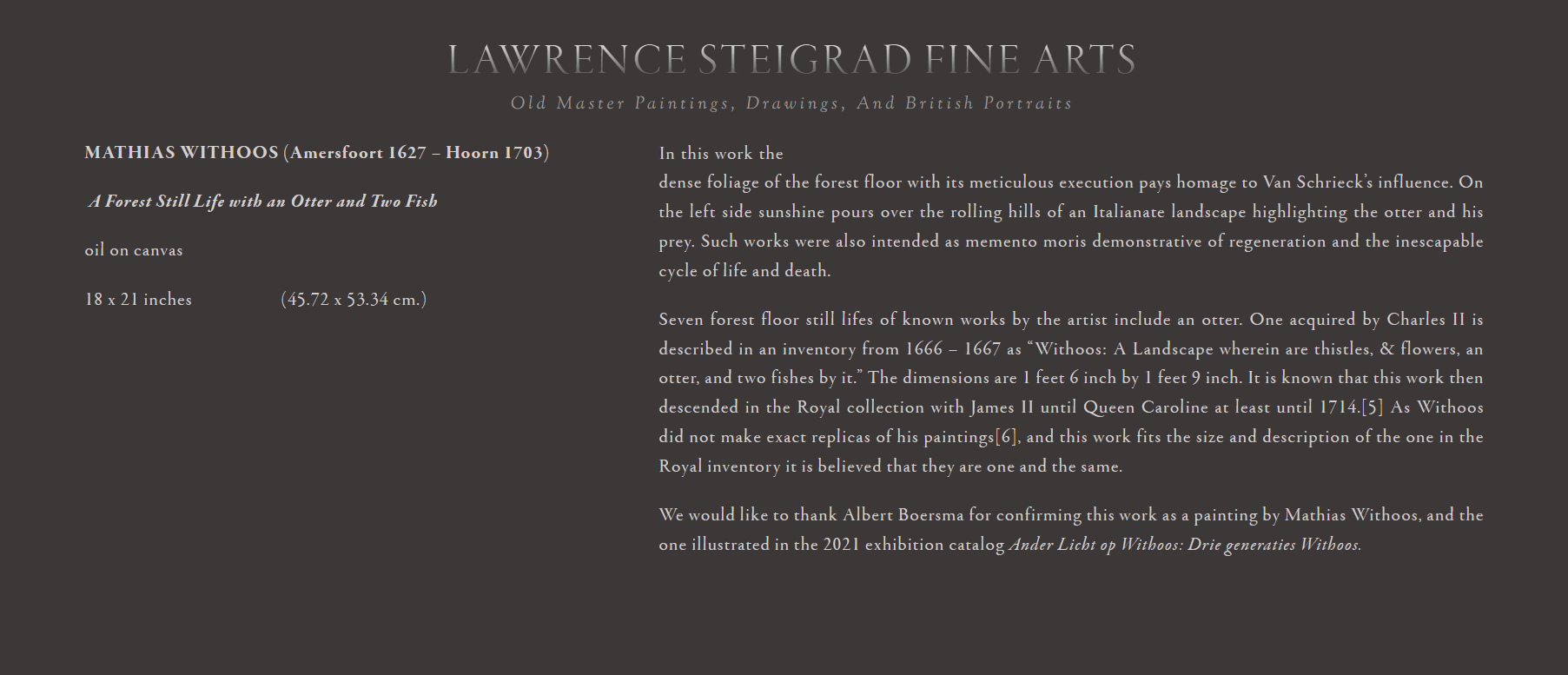 • When he was 21, Withoos made a trip to Rome with van Schrieck, and Willem van Aelst.