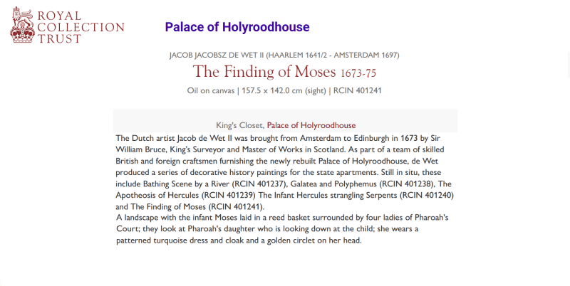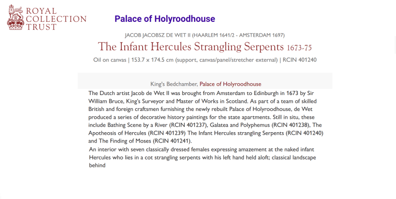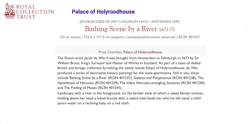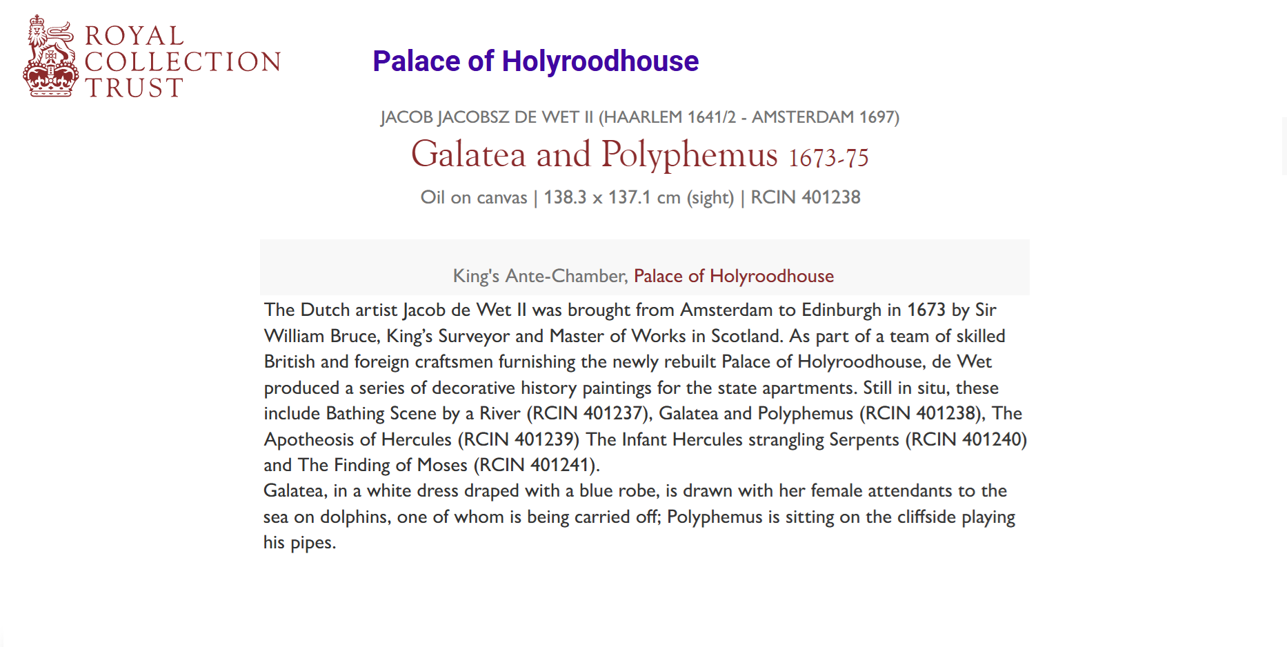 • For two years, de Wet painted decorative historical, mythical and allegorical scenes for the newly rebuilt state apartments at Holyrood.