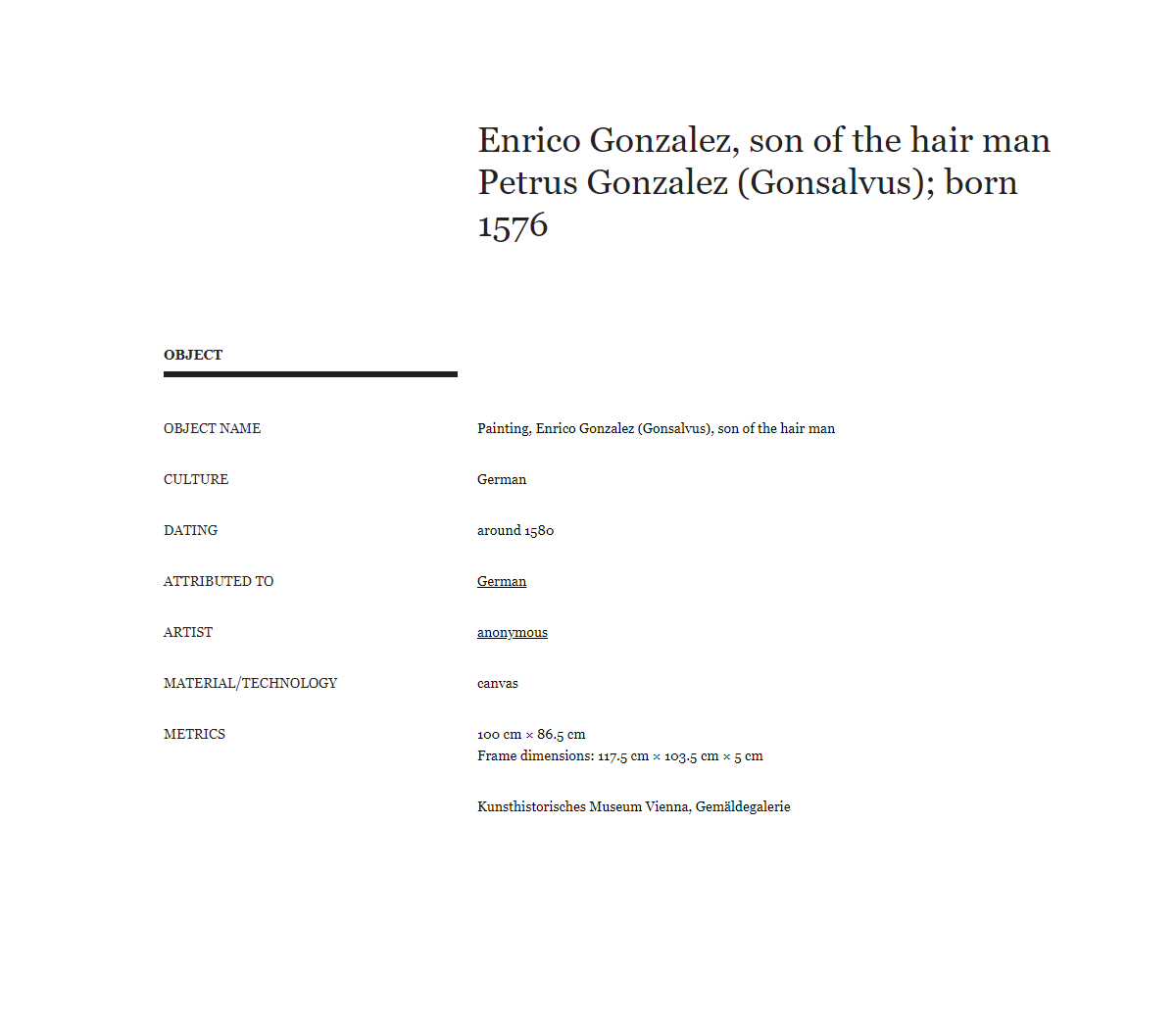 Unidentified artist German, Enrico Gonzalez, son of the hair man Petrus Gonzalez (Gonsalvus); born 1576, around 1580