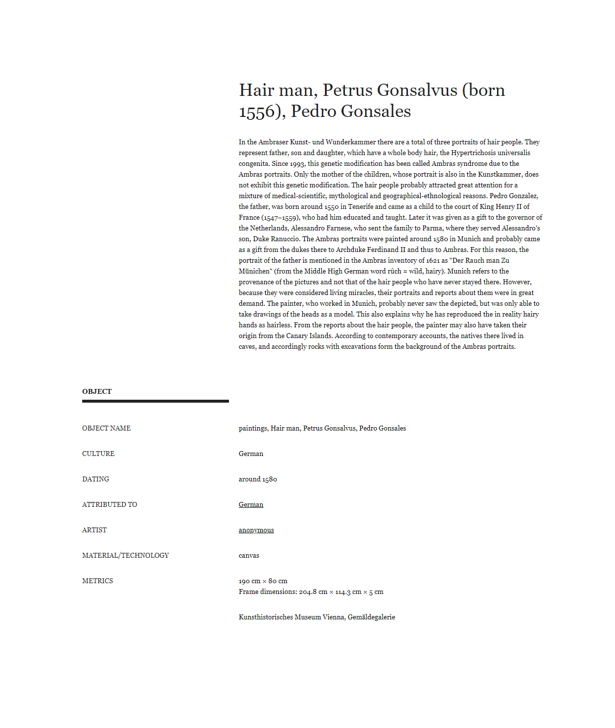 Unidentified artist German, Hair man, Petrus Gonsalvus (born 1556), Pedro Gonsales, around 1580
