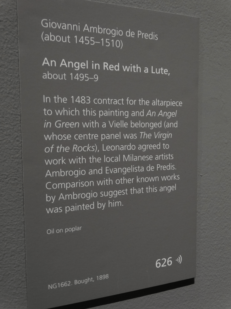 An angel in Red with a Lute (1495-9) The National Gallery - London